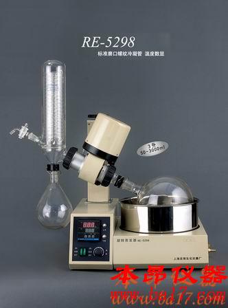 RE-5298旋轉蒸發器是采用旋轉蒸發瓶(燒瓶),增大蒸發面積在減壓下置于水浴中一邊旋轉,一邊加熱的裝置,使瓶內溶液擴散蒸發。